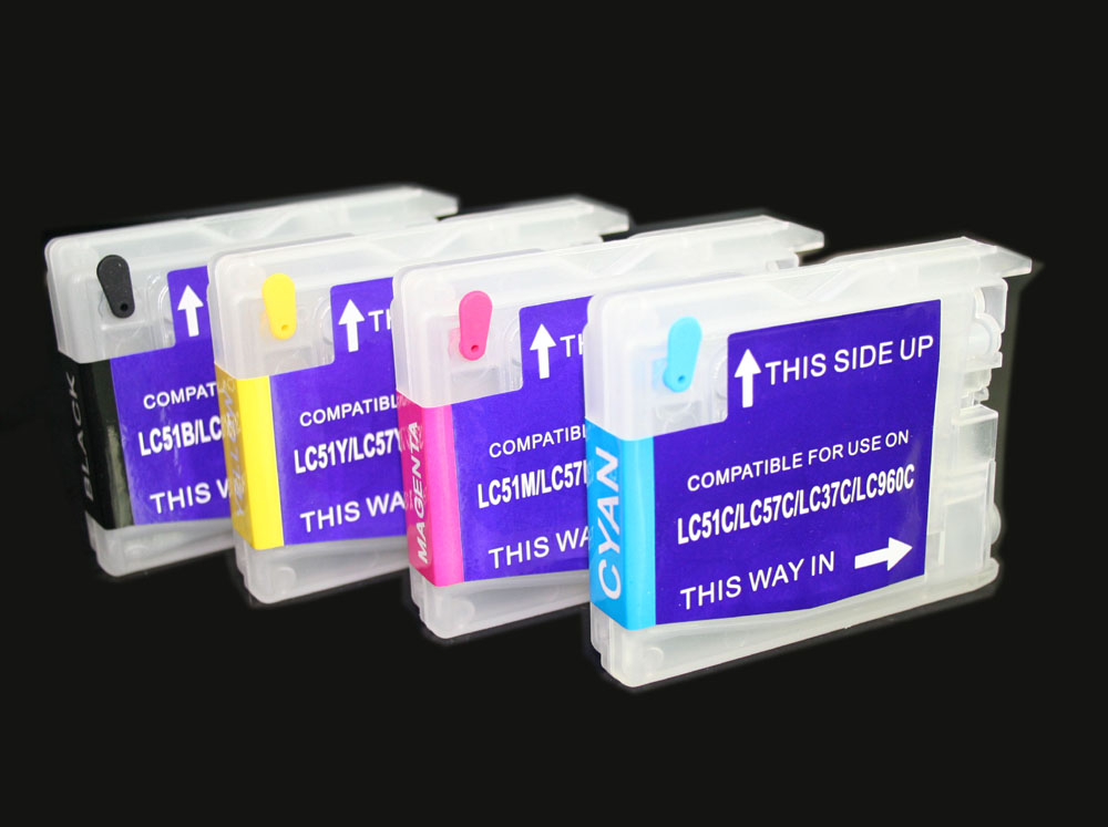 These Brother LC51 refillable cartridges work with it works with Compatible with: Brother DCP 130 C, 330 C, 350 C, 540 CN, 750 CW, Fax 1360, 1860 C, 1960 C, 2480 C, IntelliFax 1360, 1860 C, 1960 C, 2460 C, 2480 C, 2580 C, MFC 230 C, 240 C, 244 CN, 440 C, 440 CN, 465 CN, 655 CW, 660 CN, 665 CW, 685 CW, 845 CW, 885 CW, 3360 C, 5460 CN, 5860 CNCartridges #: Brother Black LC51BK, cyan LC51C, magenta LC51M and yellow LC51Y color cartridges,We have empty refillable cartridges, refillable cartridges with ink prefilled.
