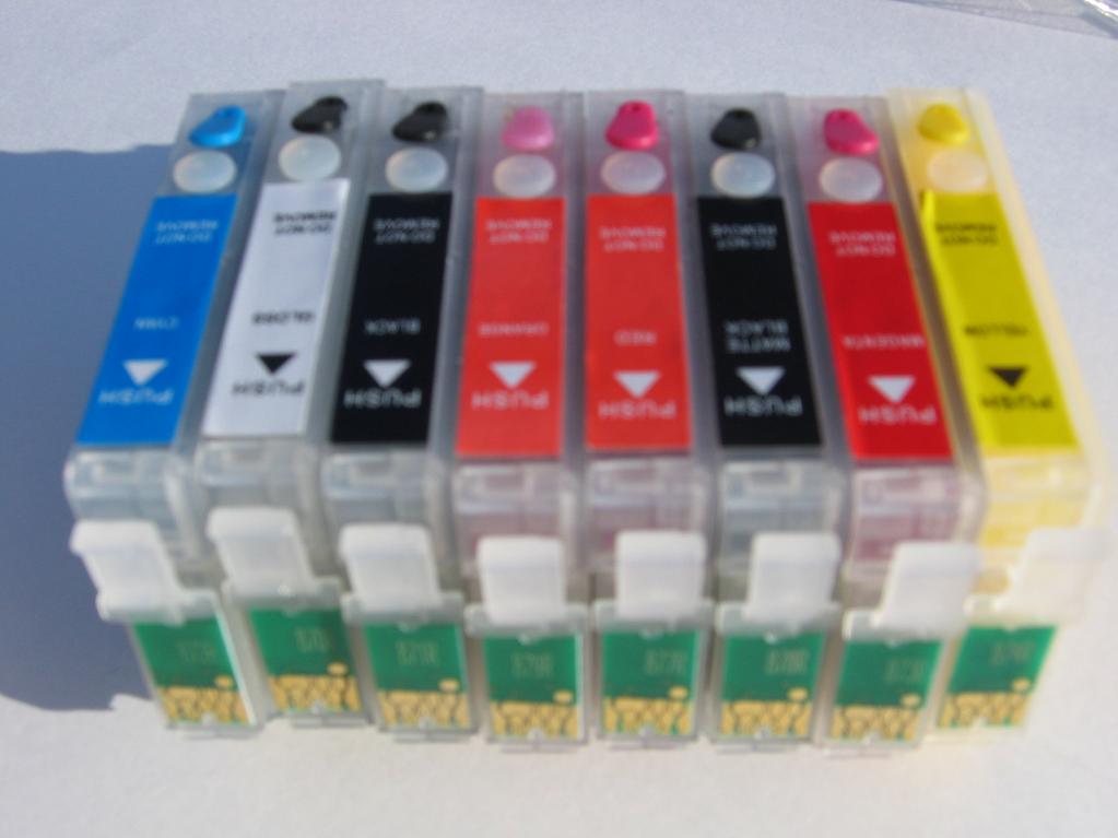 Note: Please install all Eight cartridges. If you install 1-7 refillable cartridges, none of them will work. Take a look at the following instructions before you use them. The differences : Dye Ink, Pigment Ink
