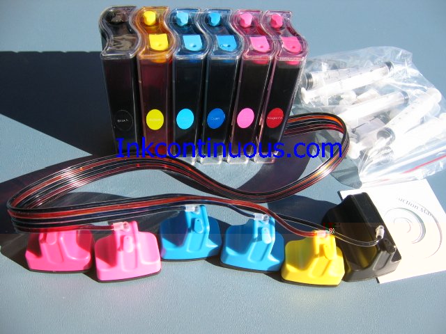 This continuous ink system is designed for HP PhotoSmart C8180/8250/8250v/8250xi/8253. HP PhotoSmart C5140/C5150/C5180/C5188/C6100/C6150,C6160/C6180/C6200/C6240, C6250/C6280/C7150/C7170/C7180, C7250/C7280/C7288/D7145/D7155, D7160/D7168/D7260/D7268, D7345/D7355/D7360/D7368/D7460, HP 8230/8238/3308/3210/3108/3310/3110/3300, HP Photosmart D7300 Series, HP Photosmart D7100 Series, HP Photosmart 5100/C7100/C7200/D7300 All-in-One Series Printers that use the HP 02 black or C8721wn black ink cartridge (10ml), HP 02 C C8771wn Cyan ink cartridge (4ml),HP 02 M or C8772wn Magenta ink cartridge (3.5ml),HP 02 Y or C8773wn Yellow ink cartridge(6ml), HP 02 LC or C8774wn Light Cyan ink cartridge (5.5ml), HP 02 LM or C8775wn Light Magenta ink Cartridge (5.5ml).